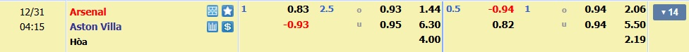 Soi kèo châu Á Arsenal vs Aston Villa