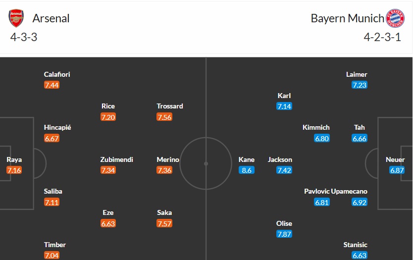 Phân tích đội hình – chiến thuật Arsenal vs Bayern