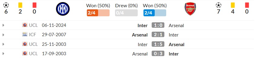 Lịch sử đối đầu Inter vs Arsenal